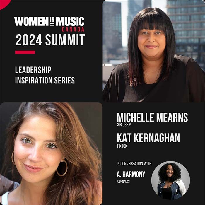 In keeping with WIM Canada's focus on leadership in 2024, we're bringing together TikTok's Kat Kernaghan and SiriusXM's Michelle Mearns in a conversation with journalist and culture critic, A. Harmony. Enjoy a grab'n'go lunch as these trailblazers talk career path, tips, tricks and inspiration for leadership in today's music industry in Canada.